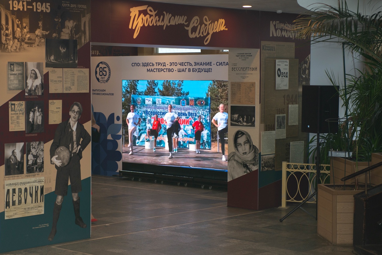В этот день с нашей делегацией были и педагоги, и студенты, и ветераны колледжа… На стендах фотовыставки, в речи ведущих, в видео-галерее, в фотоколлажах сцены. А иначе и не могло быть, ведь мы – единая семья СПО с основания колледжа и по сей день.