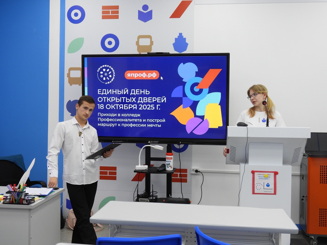 Амбассадоры Профессионалитета и студенты специальности “Педагогика дополнительного образования” Хамутова Иляна и Никитин Артем рассказали будущим абитуриентам об особенности подготовки к вступительному испытанию – самопрезентации.