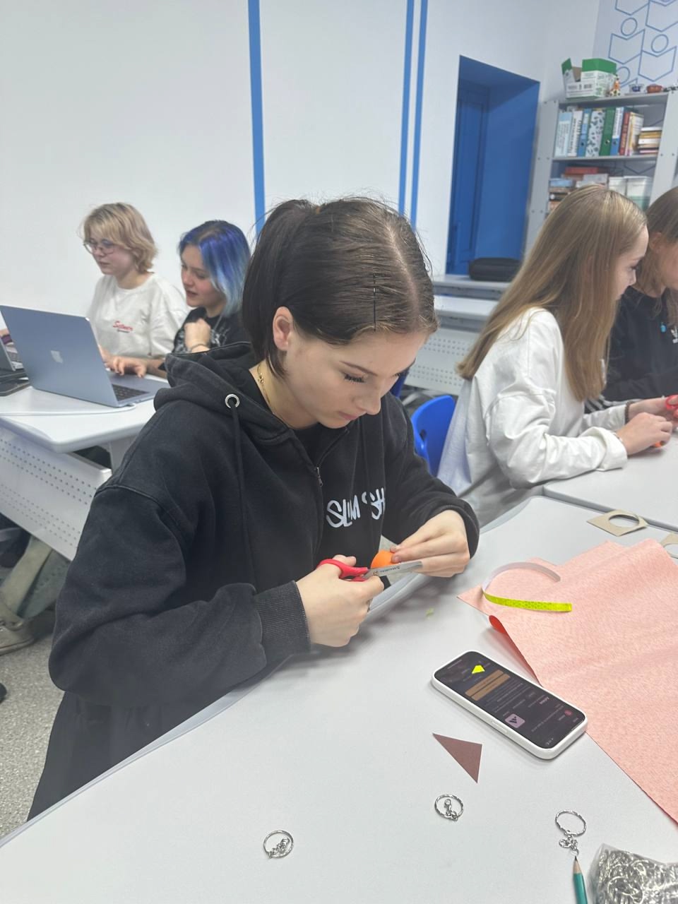 В рамках акции ребята изготовили светоотражающие брелки для рюкзаков.