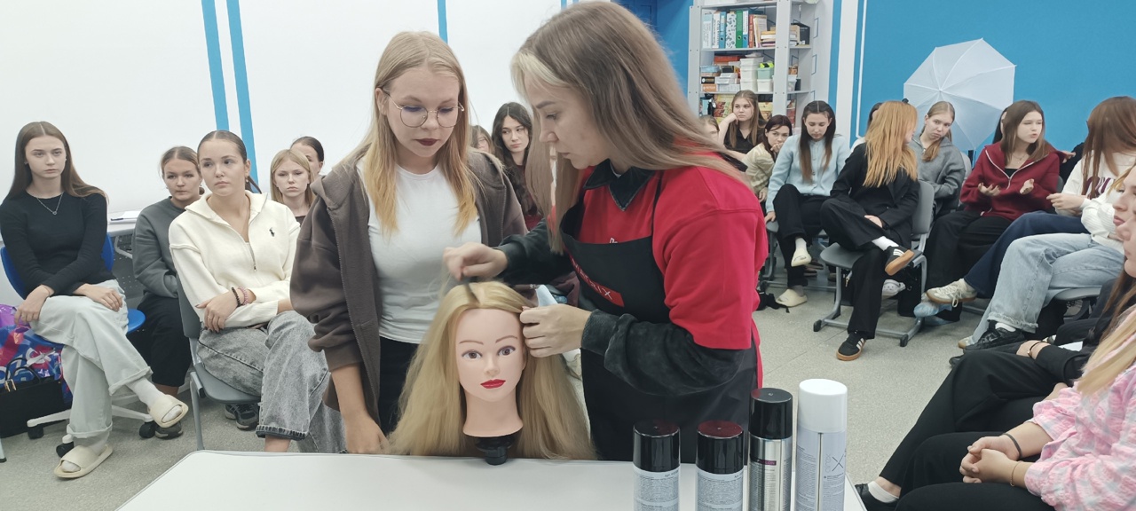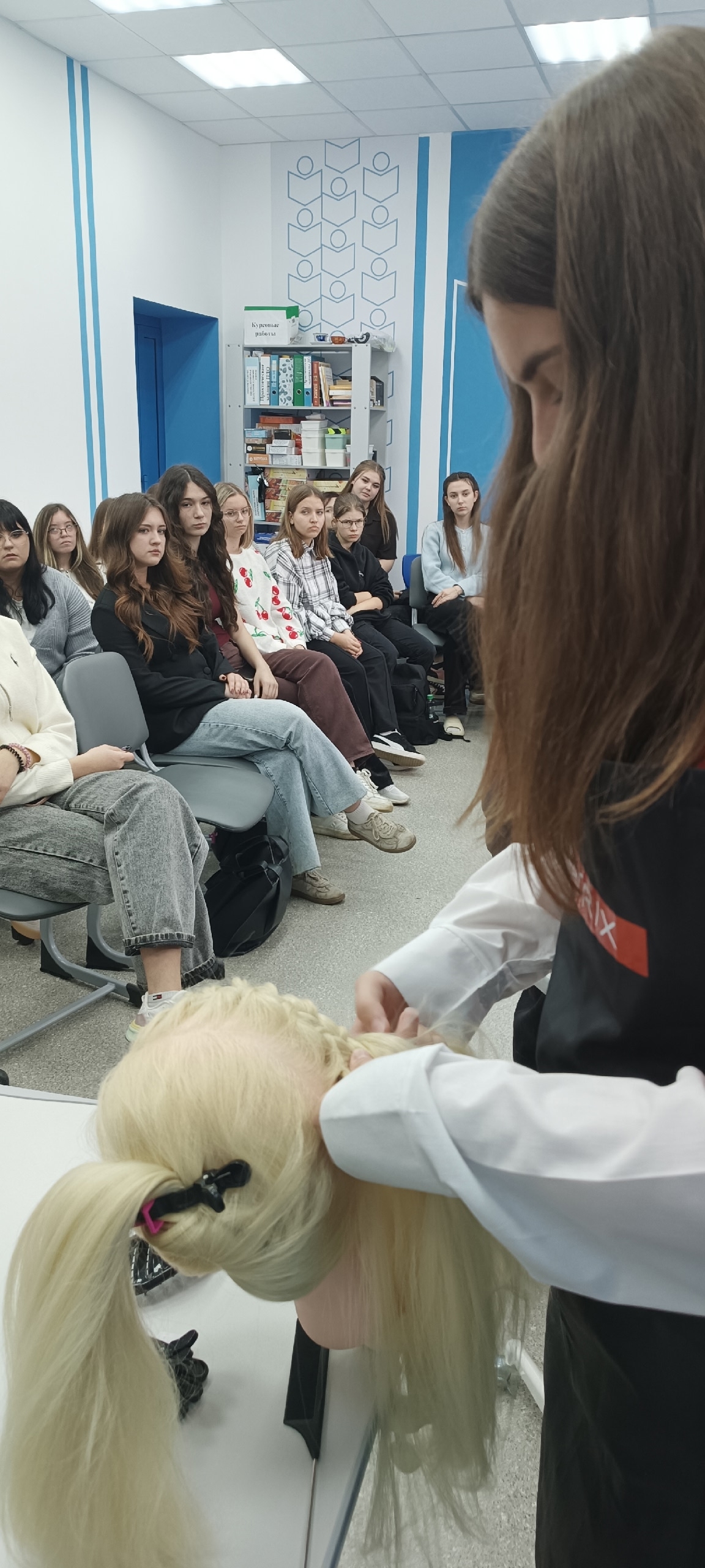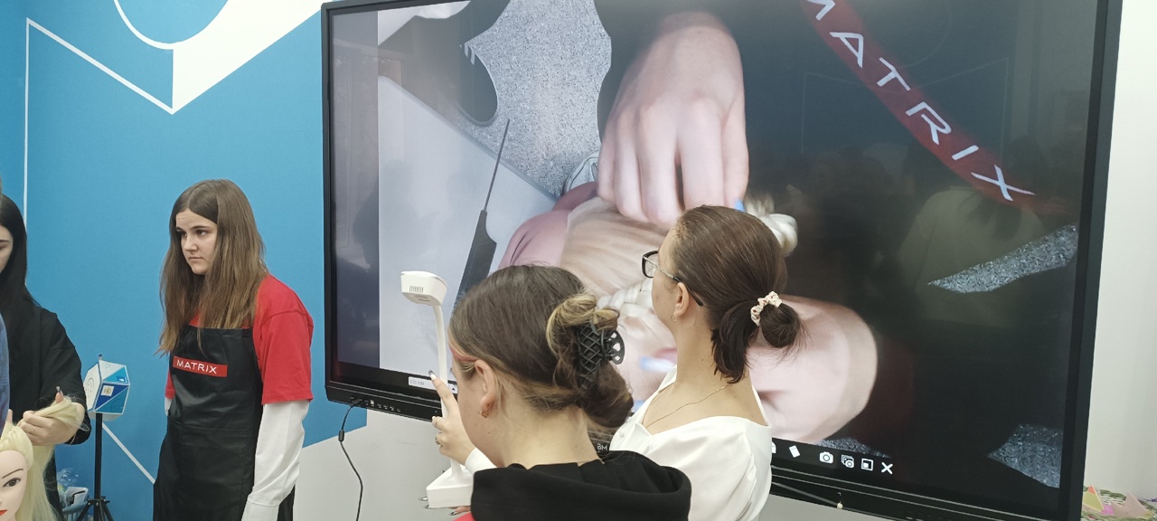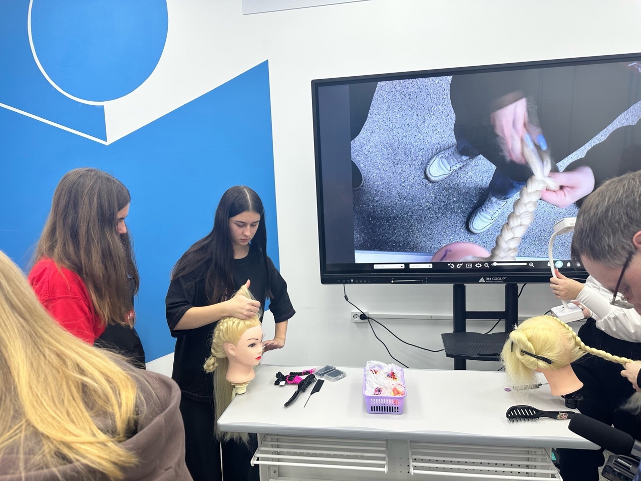 Благодаря использованию документ-камеры, все участники (42 человека) смогли увидеть технологию плетения косы «колосок», поупражняться под присмотром профессионалов, получить советы.