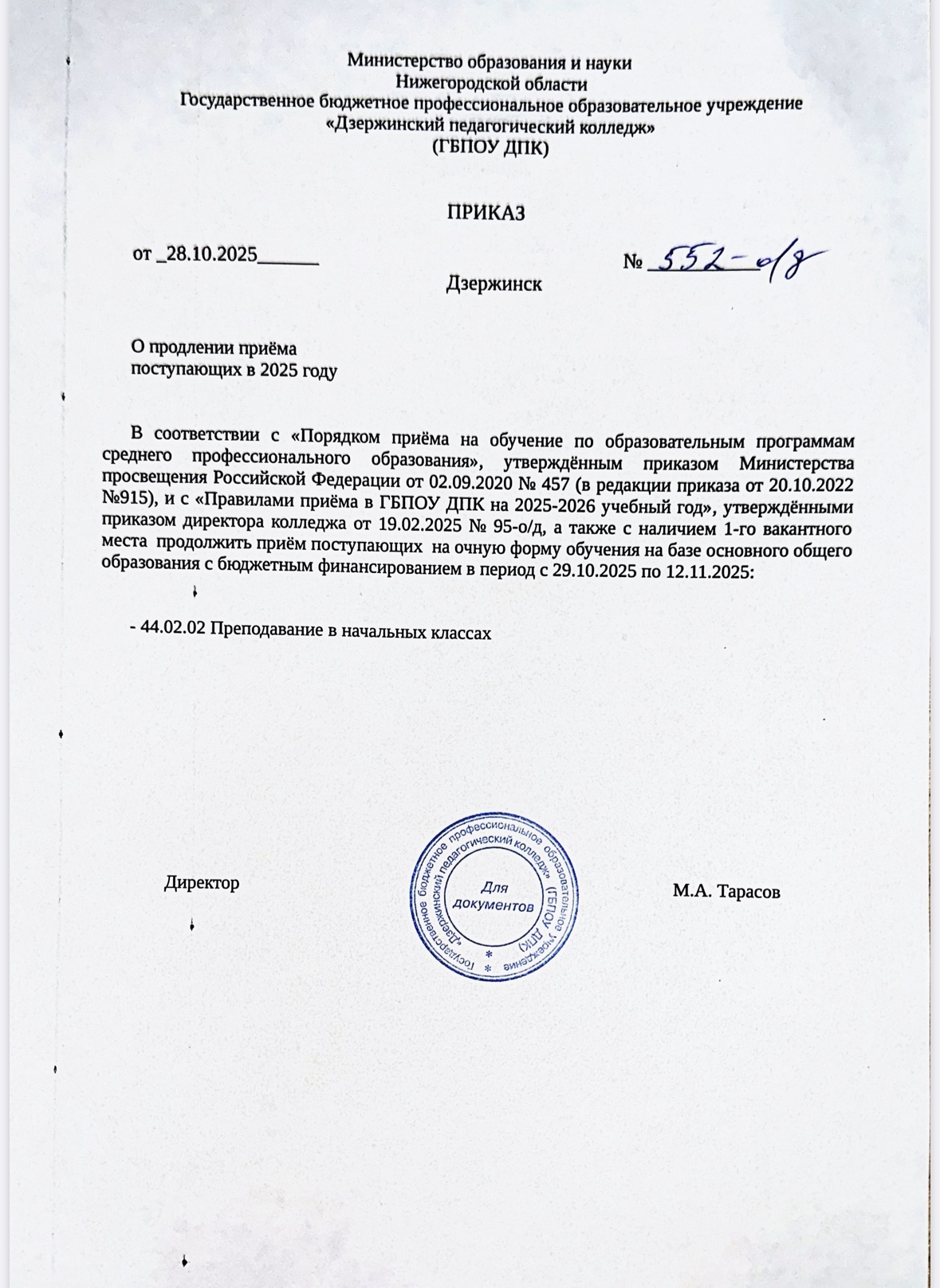В ГБПОУ “Дзержинский педагогический колледж” продлён приём документов на 1 курс специальности 44.02.02 Преподавание в начальных классах на очную форму обучения на базе основного общего образования с бюджетным финансированием.