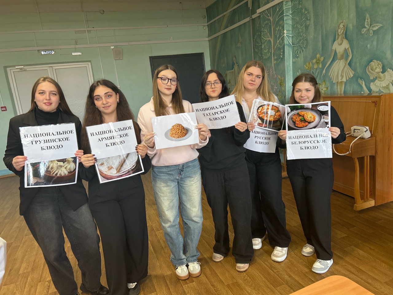 В нём приняли активное участие студенты 1-2 курсов. В рамках события участники исполняли элементы национальных танцев, пели традиционные русские песни, а также выполняли увлекательные задания, связанные с национальными костюмами. Особый интерес вызвало задание на определение принадлежности различных блюд к той или иной национальности.🌍
