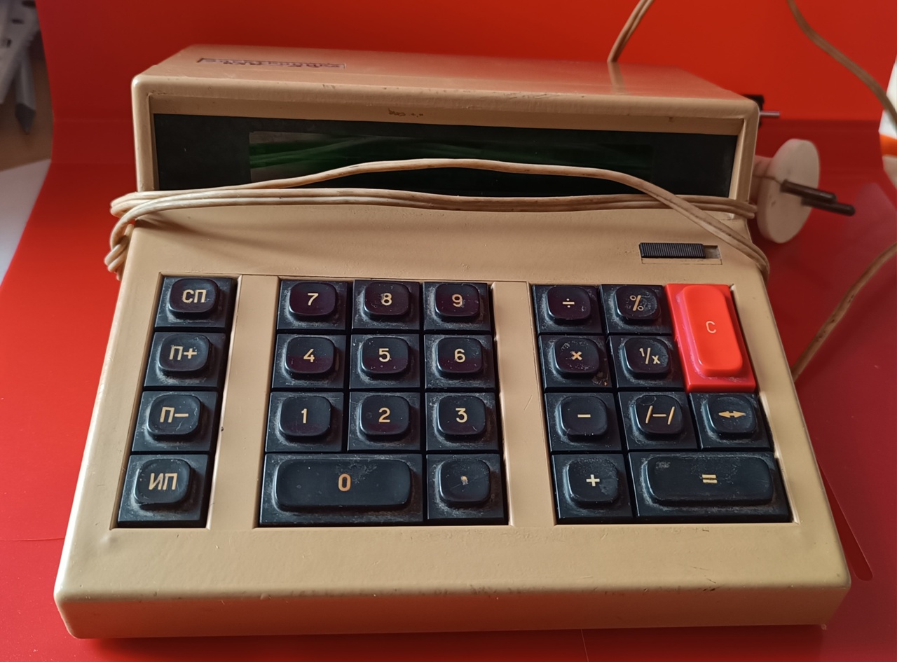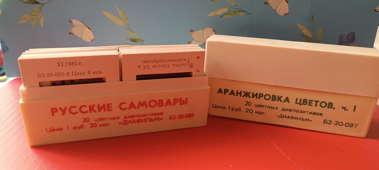 Лампа с очень интересным элементом накаливания, с которой делали уроки, калькулятор, набор диапозитивов, открытки.
