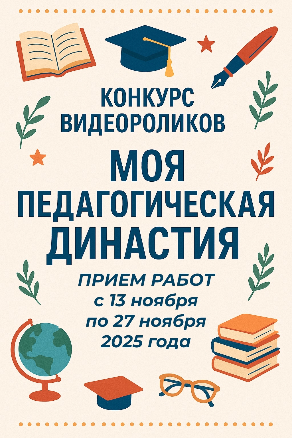 Ваши родители педагоги? Может быть, бабушка, дедушка, тетя или дядя являются представителями педагогической профессии? Тогда этот конкурс для вас!!! Приглашаем всех желающих к участию в конкурсе видеороликов “Моя педагогическая династия”!!! Прием работ стартует уже 13 ноября!!!