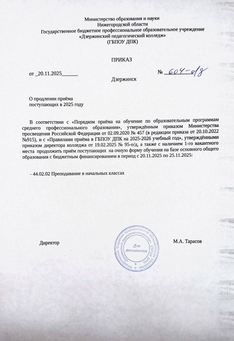 Прием документов будет осуществляться в период с 20.11.2025 по 25.11.2025.