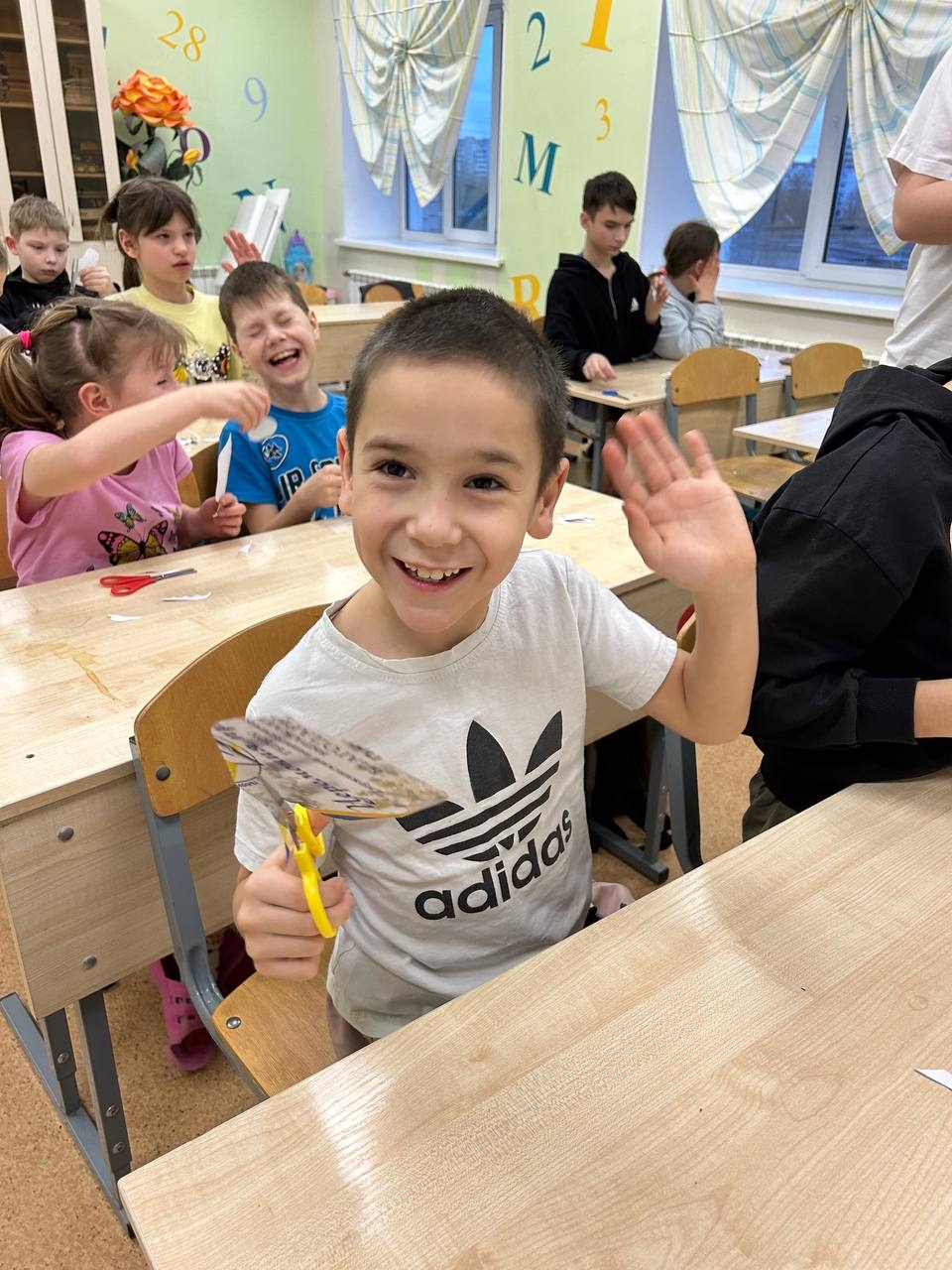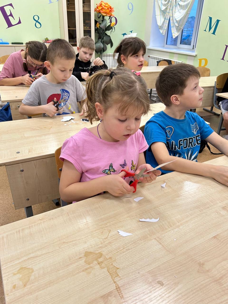 Творческий процесс начался с весёлой пальчиковой разминки, после которой дети с удовольствием приступили к рукоделию. С увлечением и старанием дети вырезали из бумаги фигурки героев, а затем аккуратно прикрепляли их к палочкам. В воздухе витало предвкушение чего-то необычного.