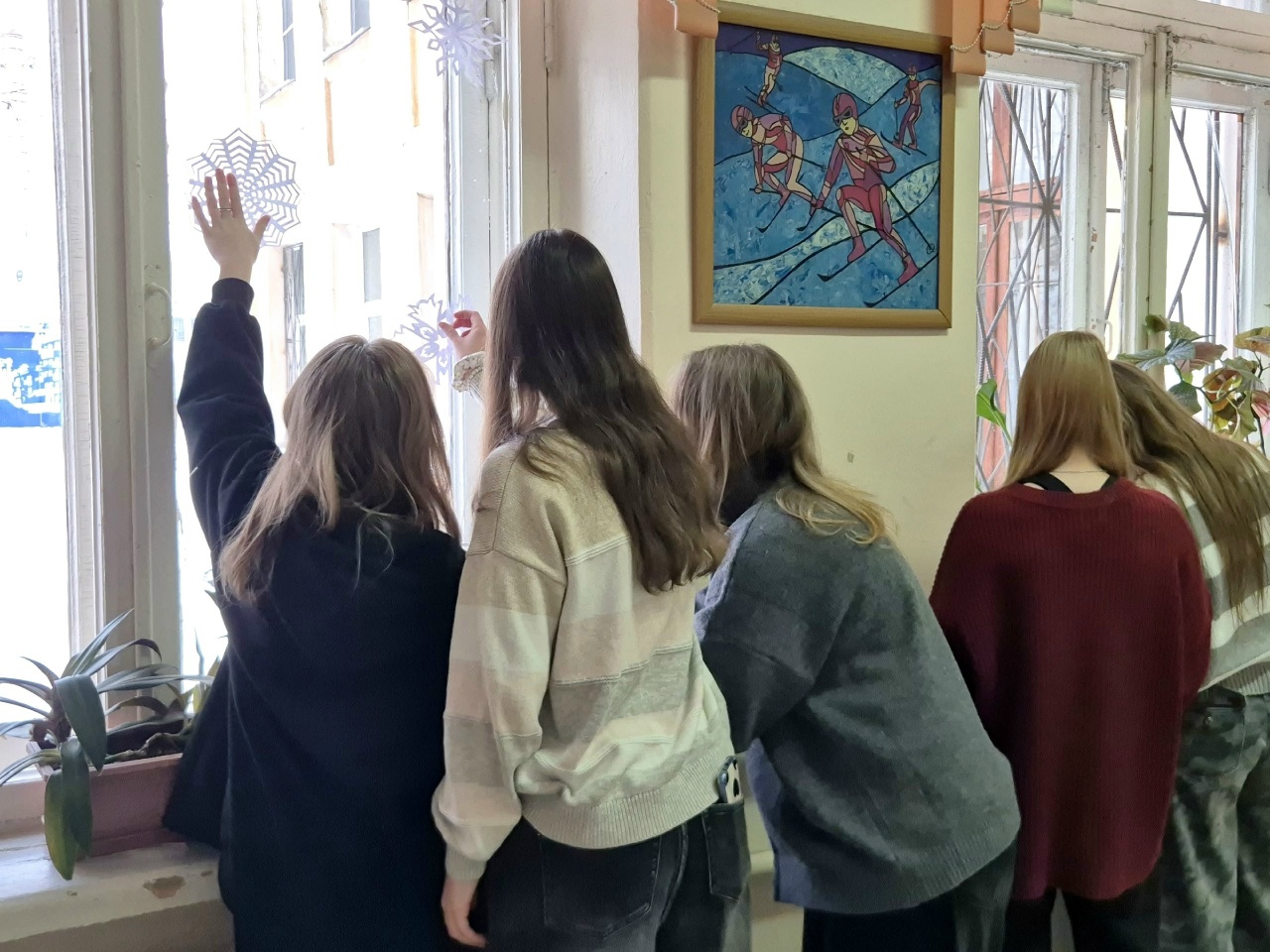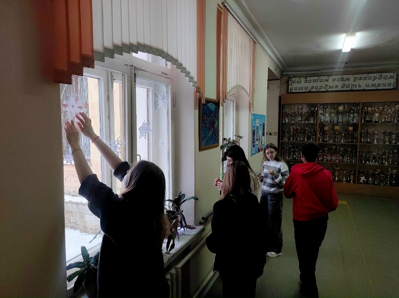 Сегодня наши ребята активно включились в акцию «Новогодние окна» от Движения Первых.