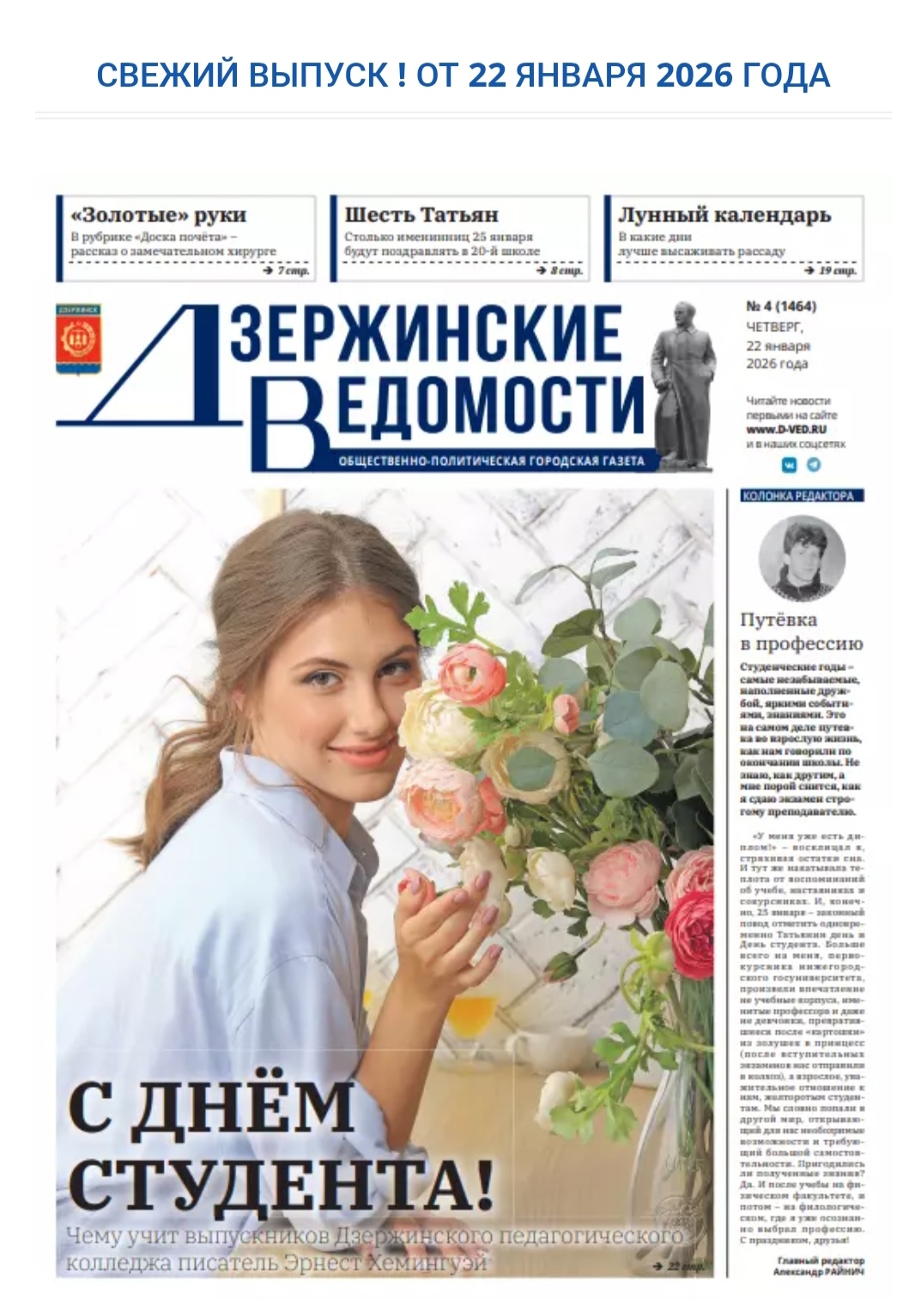 Наша Алина Андреевна Егорычева на обложке городского издания Дзержинские Ведомости