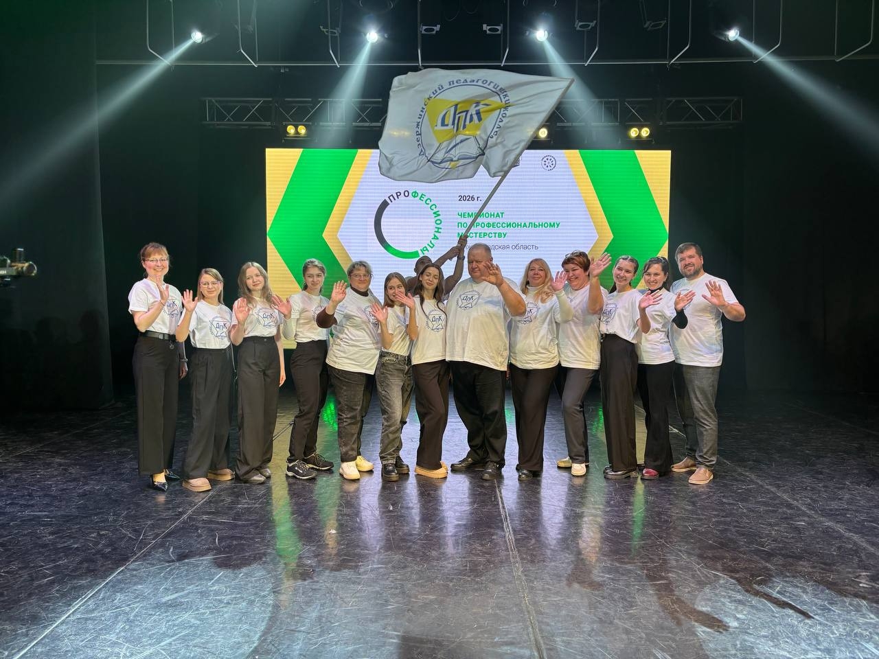 Пусть флаг Дзержинского педагогического колледжа поднимается как можно чаще на сцене на церемонии подведения итогов регионального этапа чемпионата!