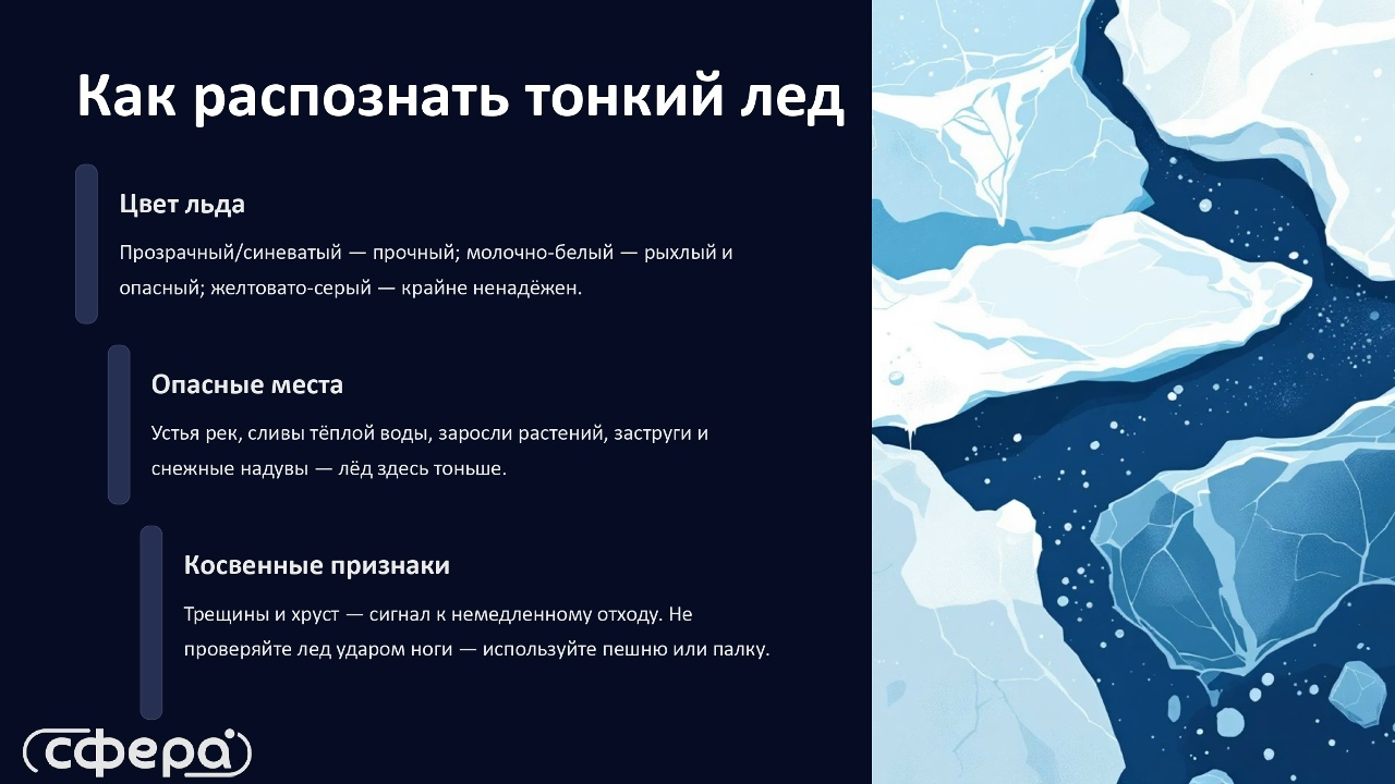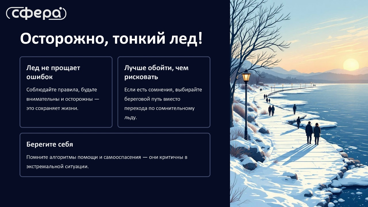 Соблюдайте правила безопасности – выбирайте береговой путь вместо льда! Берегите себя!