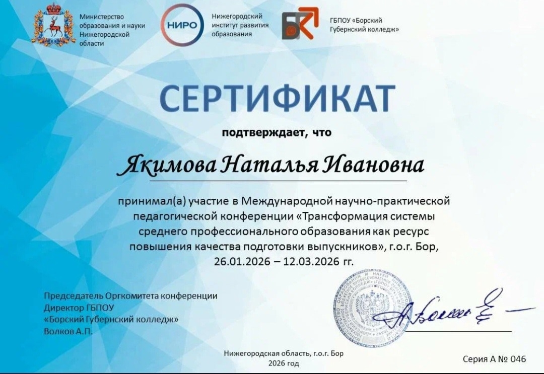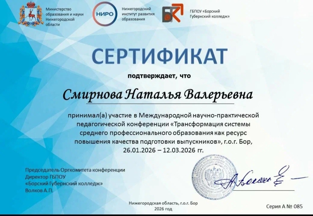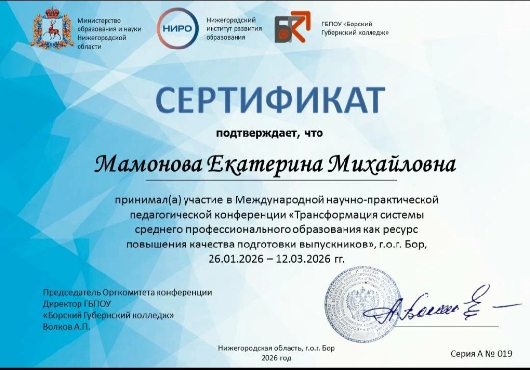 ✨️Они приняли участие в Международной научно- практической педагогической конференции «Трансформация системы среднего профессионального образования как ресурс повышения качества подготовки выпускников».