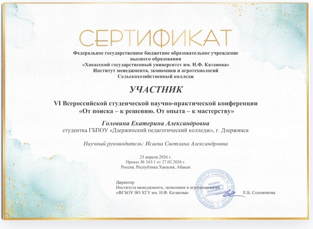 💥А студентка группы ПНК-1А Головина Екатерина на своём примере доказывает, что и первокурсники успешно занимаются учебно-исследовательской деятельностью и участвуют во Всероссийских конференциях. 💯🏅👩‍🏫