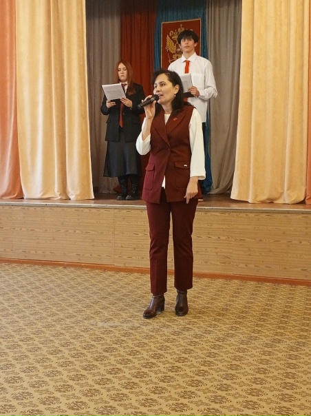 Специалисту регионального отделения Российского движения детей и молодёжи “Движения Первых” в системе СПО по Нижегородской области, Бородаевой Е. С., выпала почётная задача по посвящению педагога техникума, Проливановой О. Н в председатели первичного отделения. Кроме того важно было обратиться к ребятам с напутствием.