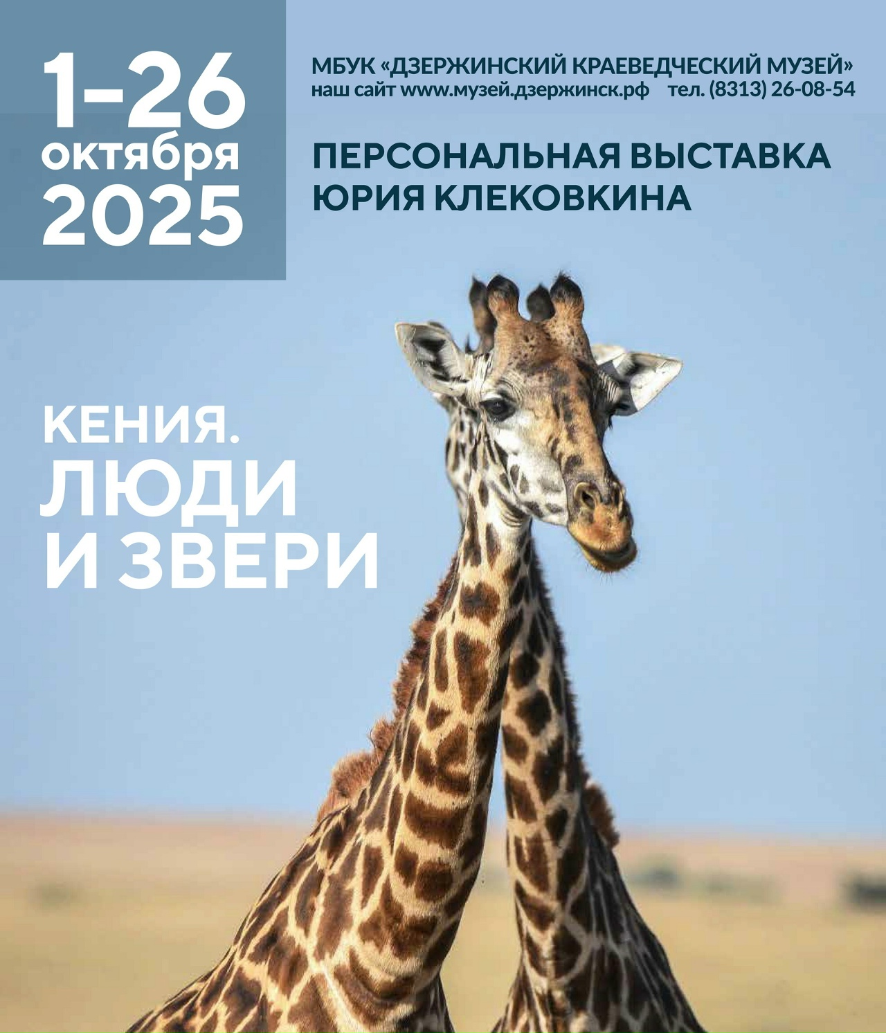 С 1 по 26 октября 2025 г. в МБУК «Дзержинский краеведческий музей» будет работать персональная фотовыставка Юрия Клековкина «Кения. Люди и звери»