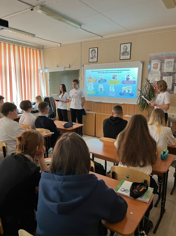 ✔ В ходе классного часа школьники узнали о преимуществах Федерального проекта «Профессионалитет», о возможностях и перспективах обучения в колледже, а также