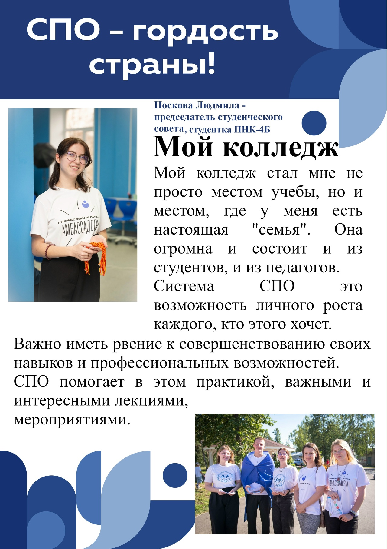 👤Один из таких героев – Носкова Людмила, студентка ДПК специальности “Преподавание в начальных классах”, председатель студенческого совета, делится своими мыслями о важности обучения и профессионального развития в системе СПО.