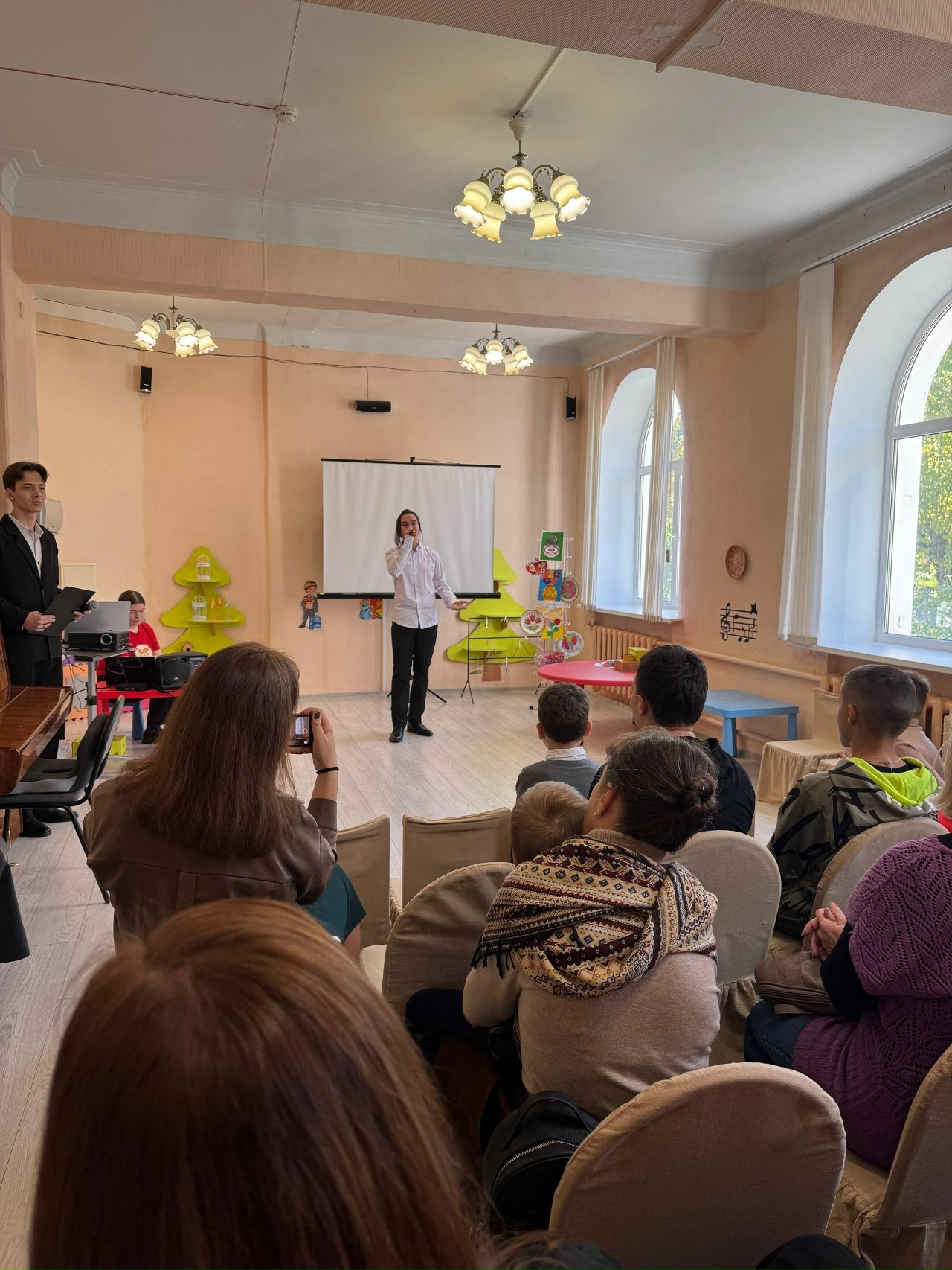 Особую благодарность выражаем нашим солистам вокальной студии «Созвучие» – Сафиной Дарине и Криулькову Владу, в также руководителю Захаровой Анастасии Вадимовне! Душевные выступления наполнили зал музыкой и искренними эмоциями, вызвав улыбки и аплодисменты.