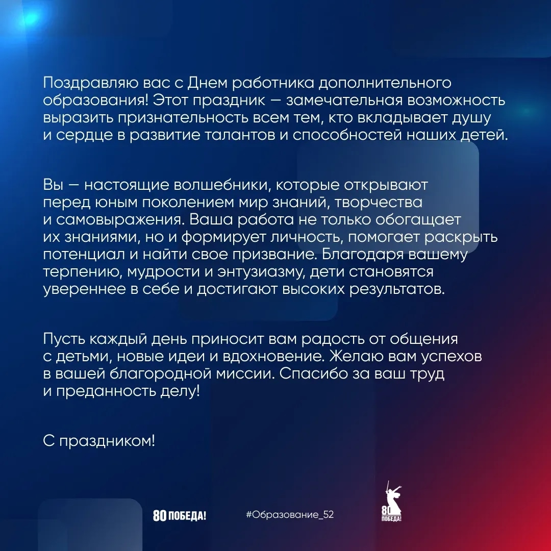 Поздравление министра образования и науки Нижегородской области с Днем работника дополнительного образования