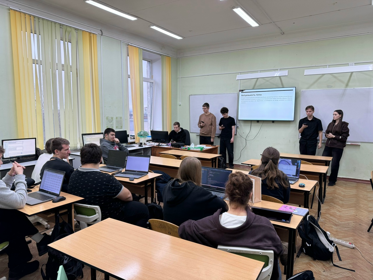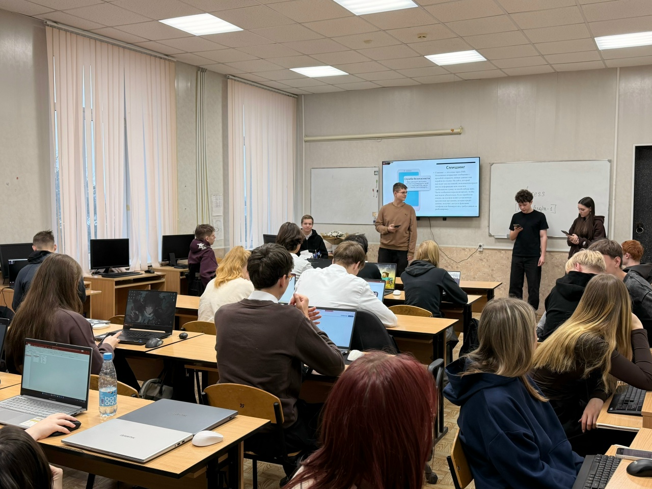 Наши креативные студенты отделения информатики из группы ИСП-2Б: Москаев Егор, Вершинин Андрей, Василенков Никита, Шитова Елена и Сатдинов Тимофей презентовали материал про “Интернет-мошенничество: проблемы и противодействие” перед студентами нашего колледжа🌟
