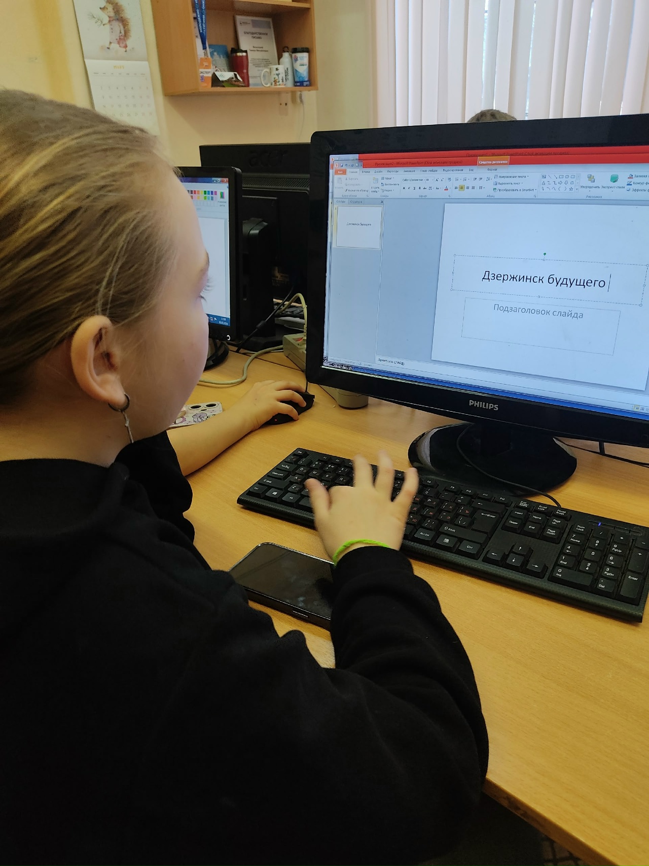 Она провела занятие в объединении “Начальное программирование” по теме “Город будущего”. Как же это оказалось классно – пройтись по старому и современному Дзержинску, а потом помечтать о будущем!