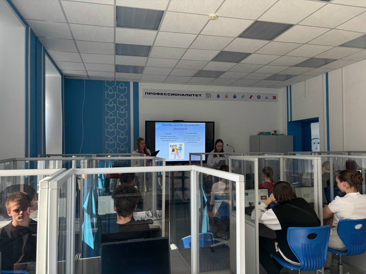 «Профессионалитет» в действии! 25 марта в рамках каникулярной недели для школьников города Дзержинска проведены профессиональные пробы: «Повышение мотивации подростков к занятию спортом через создание видео-презентации компетенций, связанных с физической культурой и спортом». Смирнова Мария и Власова Анастасия, студентки группы ПНК-1Б, познакомили ребят с теоретическими основами по теме «Мотивация», а также помогли в разработке проекта видео-презентации, связанного со спортом и физической культурой. При создании продукта школьники использовали современное цифровое оборудование и ИИ.