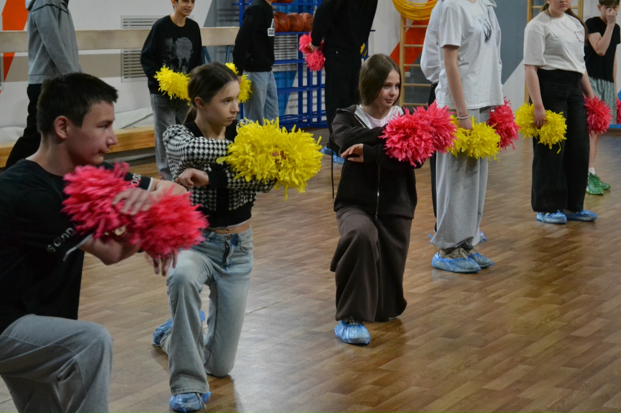 Отрасль физической культуры не стоит на месте. Сегодня в области фитнеса появляются новые направления. Одним из них является чирлидинг и чир спорт. Участники Единого дня открытых дверей получили возможность поучаствовать в профессиональной пробе “Новые виды спорта”, которую провела для ребят руководитель ПрофСтарт- учебно-производственный комплекс Алина Егорычева.